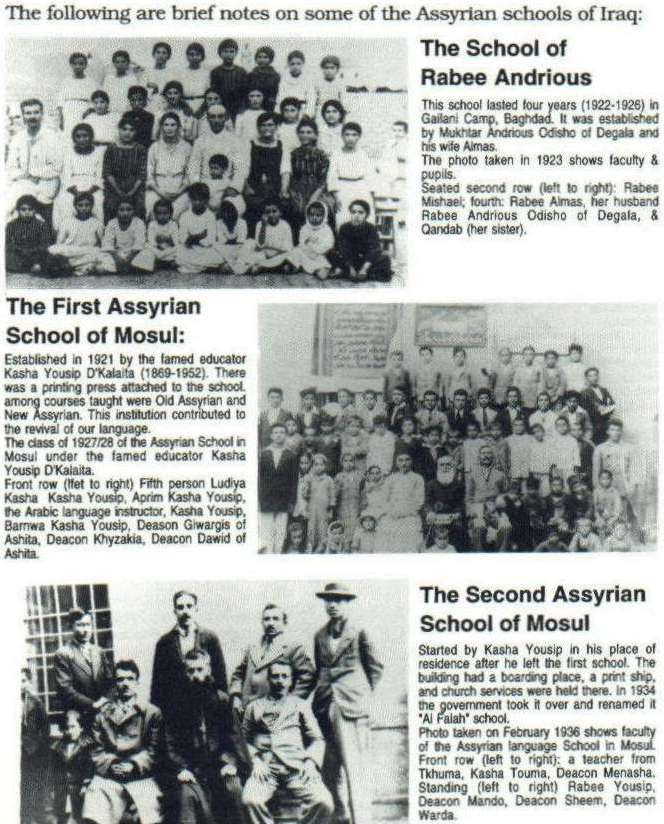 Assyrian Schools of Iraq By Solomon (Sawa) Solomon The Assyrian Star September,1995 - February, 1996 * * * * *