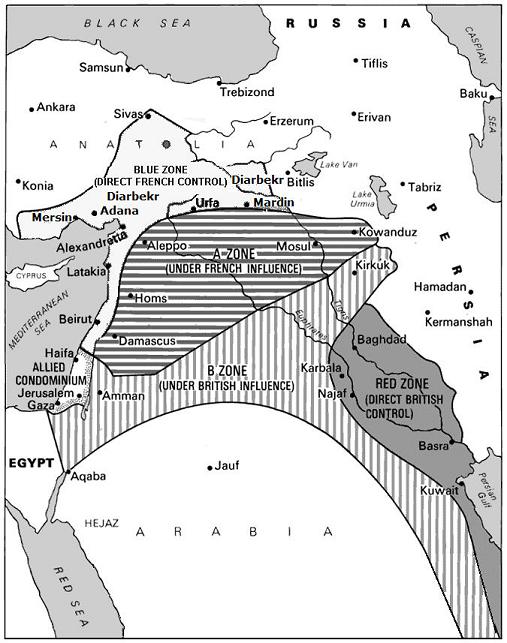 concluded in 1916, divided the Middle East into areas of influence for